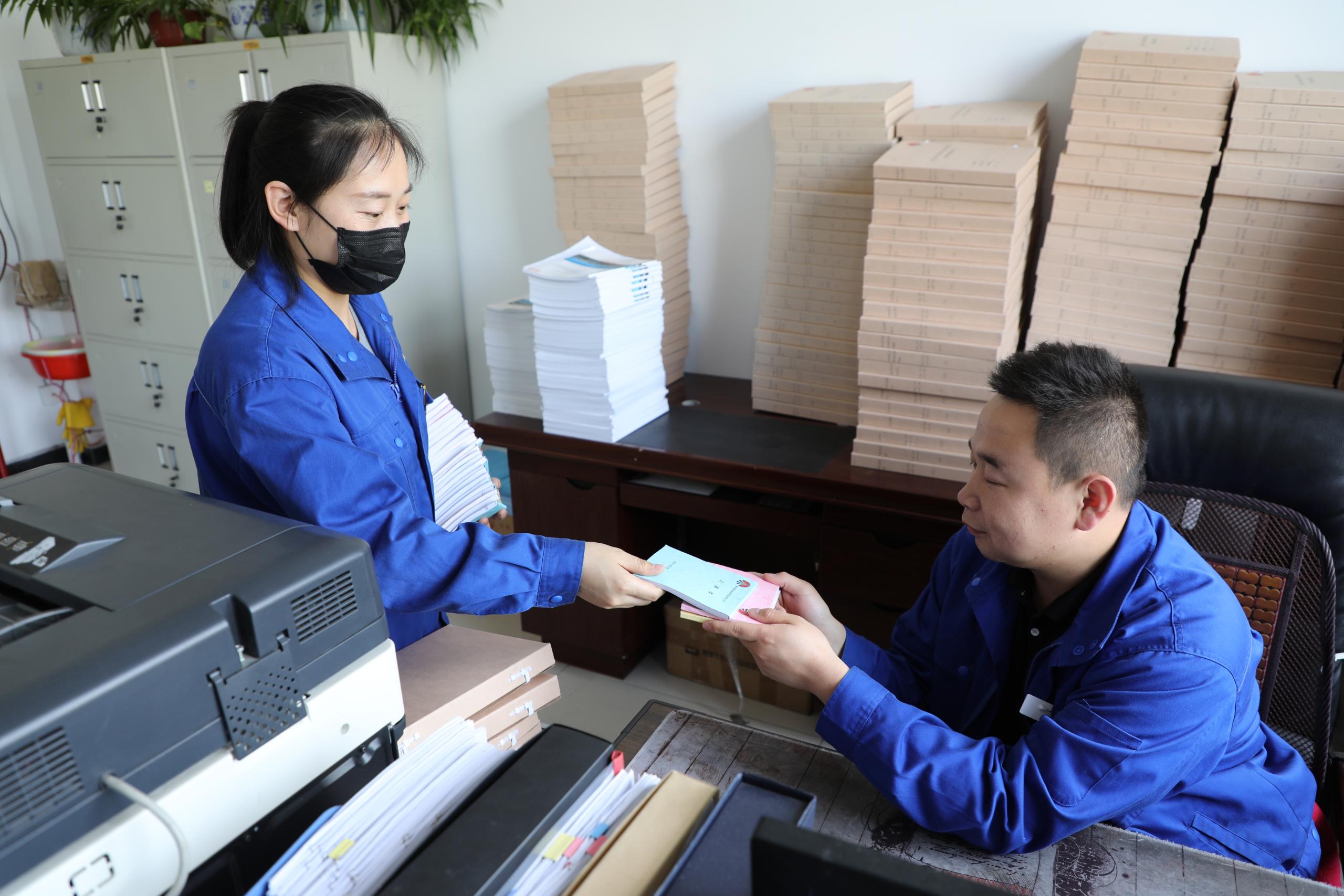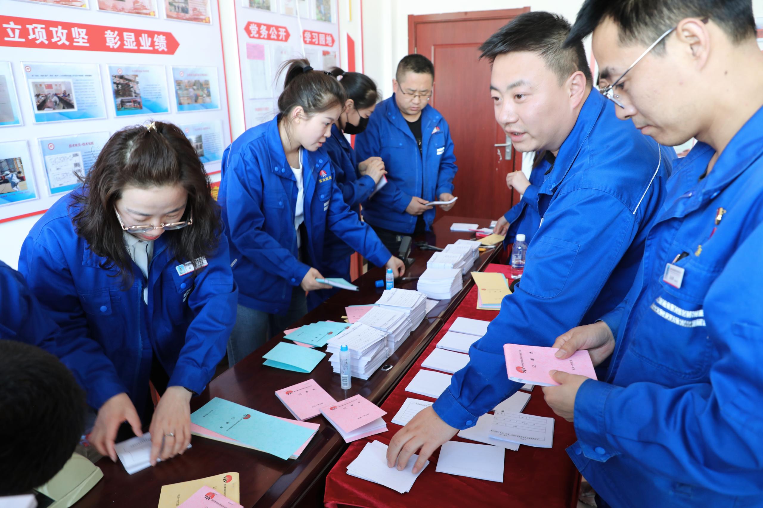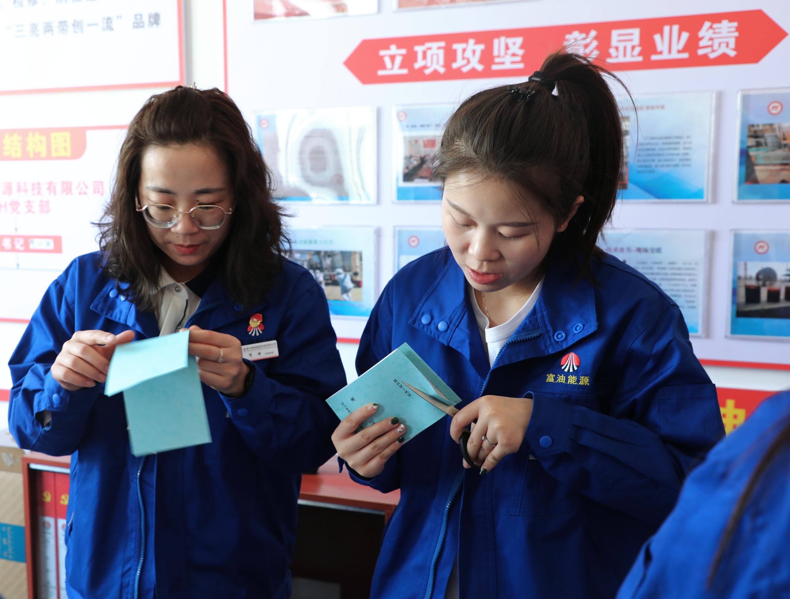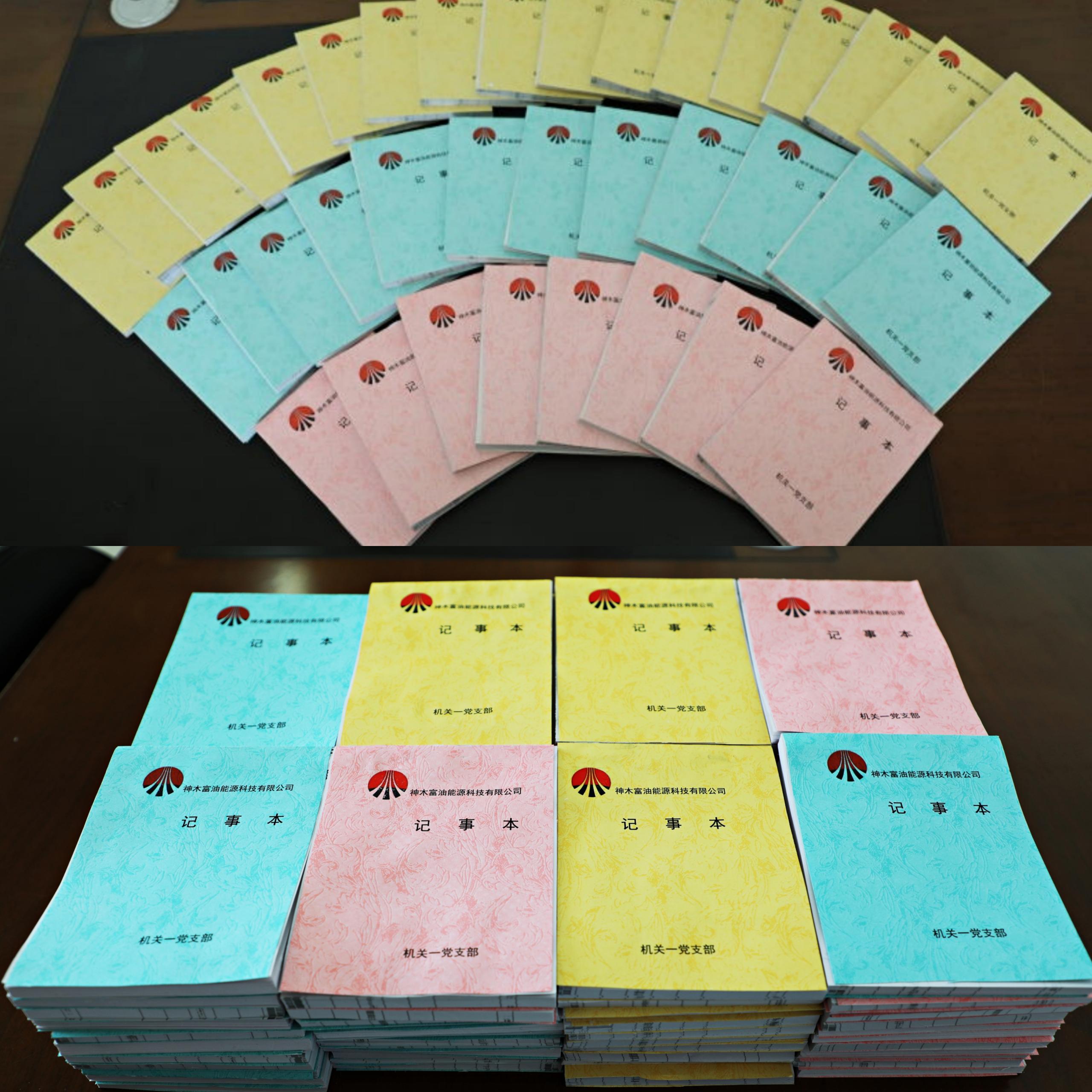 在其樂融融的氛圍中,經過近兩個小時的時間,200余本精美而又實用的記事本呈現在眾人面前。隨后,支部黨員將記事本發放給富油公司各部門使用。