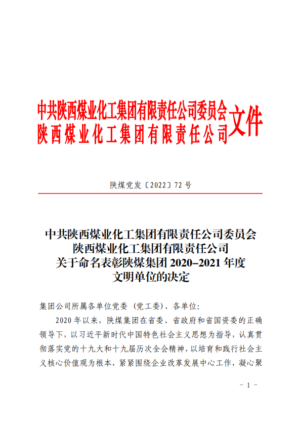 近日,陜煤集團(tuán)召開(kāi)文明單位、勞動(dòng)模范和陜煤工匠表彰大會(huì),神木煤化工電化公司榮獲陜煤集團(tuán)2020—2021年度文明單位,標(biāo)志著公司精神文明建設(shè)工作取得新的成果。